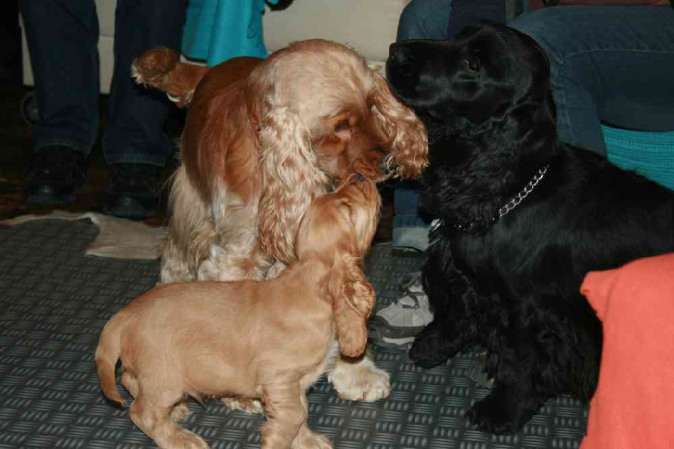 Sensible bzw. Sozialisierungsphase Diese Woche war wieder sehr ereignisreich. Die Mäuse wurden geschippt und geimpft. Sie waren sehr tapfer (auch die Rüden) . Am Wochenende war Lovelys Wurfbruder Early Bird (Paul) aus Wiesbaden zu Besuch. Ein weitere Höhepunkt war der Besuch aus Nürnberg. Papa Robin und sein Wurfbruder haben uns besucht. Das harmonische Verhalten der beiden Jungs, sowohl den Welpen als auch Lovely gegenüber, hat mich wieder bestätigt die richtige Rüdenauswahl getroffen zu haben. Wesen, Wesen, Wesen.